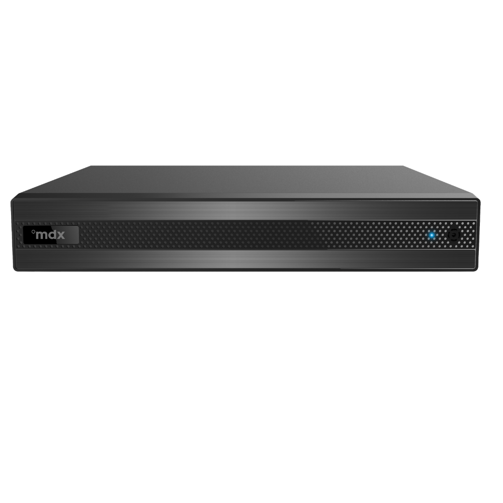 Conta com interface gráfica intuitiva, operação com mouse em estilo Windows e múltiplos modos de gravação, como manual, agendada, por movimento, sensor e IA. Oferece reprodução simultânea em até 4 canais, busca inteligente por tempo, evento e etiqueta, além de backup via USB e rede. Com função pentaplex, permite visualização, gravação, reprodução, backup e acesso remoto ao mesmo tempo.